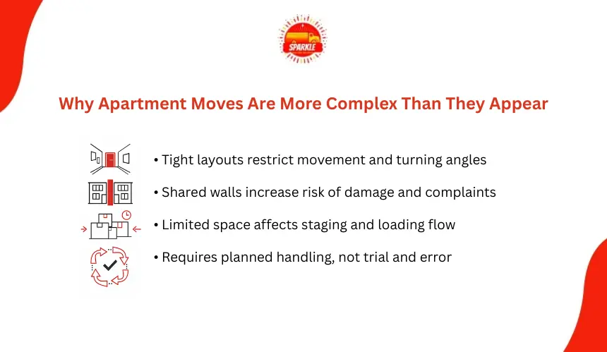 Apartment relocations concentrate logistical difficulty into confined spaces, where every movement must be controlled to avoid damage, delays, or safety issues. Professional preparation is essential because errors are harder to correct once lifting begins.