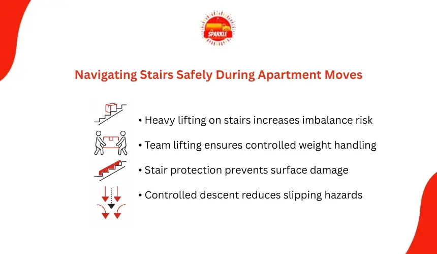 Stairs are among the highest-risk elements in apartment moving because they combine elevation change, weight transfer, and limited footing into a single task that demands technical handling.