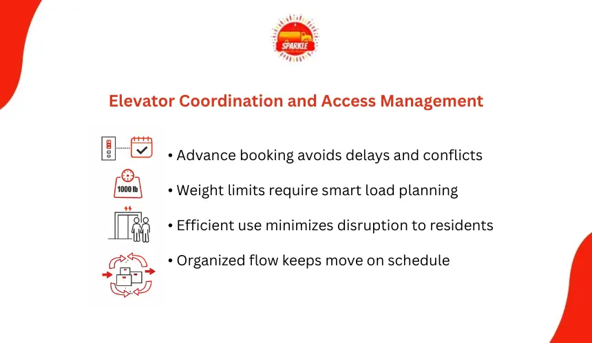 Elevator use introduces additional coordination requirements that must be addressed before moving day to avoid delays and conflicts with building management.