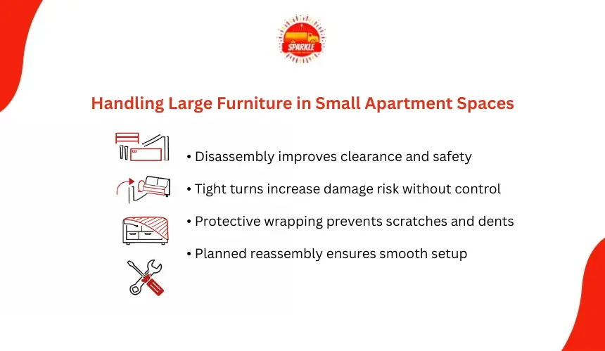 Oversized furniture often poses the biggest challenge during apartment moves, especially when space constraints are combined with stair or elevator limitations.