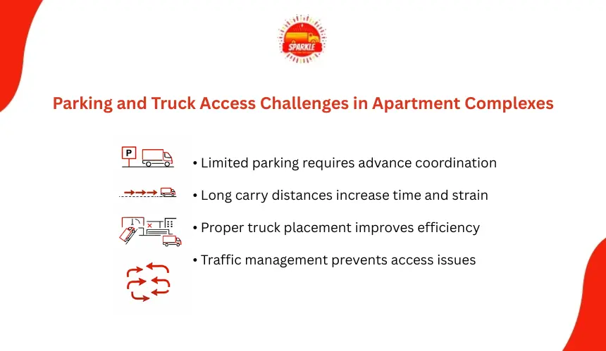 Truck positioning is critical for apartment moves, especially in complexes with limited parking or narrow access lanes.